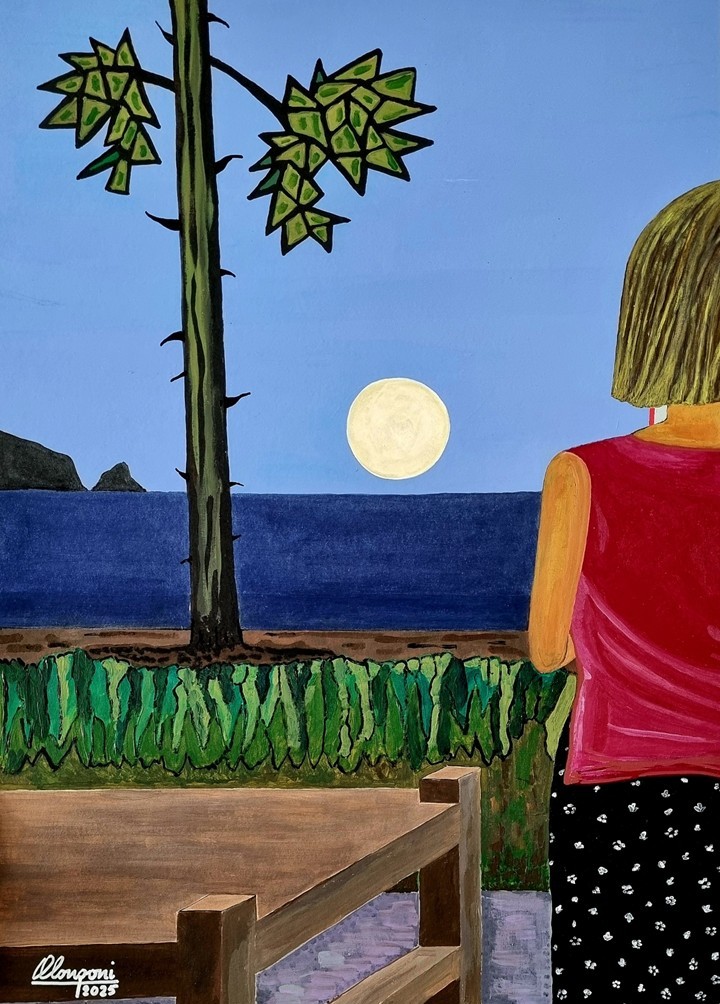 Dalla terrazza di casa Del Buono, all’isola d’Elba, una nuova interpretazione di un panorama che fa ormai parte della storia della nostra famiglia. Il quadro offre uno scorcio leggermente diverso rispetto al lavoro del 2021, sempre in queste pagine (“Dalla terrazza“, appunto).